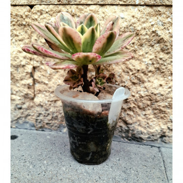 Растение в стаканчике 100мл. Уже ветвится. На стволе 4 розетки. Растение в диаметре 6-7см.