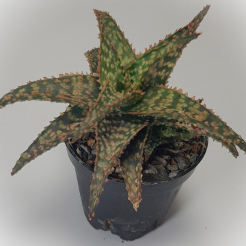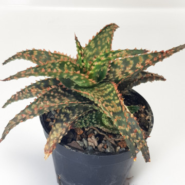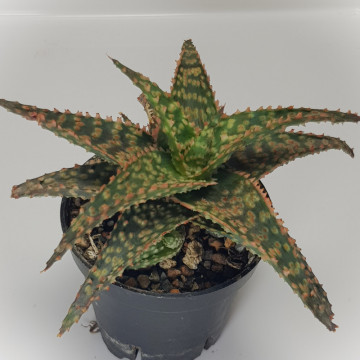Красивый зубастик. При хорошем освещении будет значительно ярче, в теплых, коралловых оттенках. Средний по размерам алоэ. Имеет три детки.