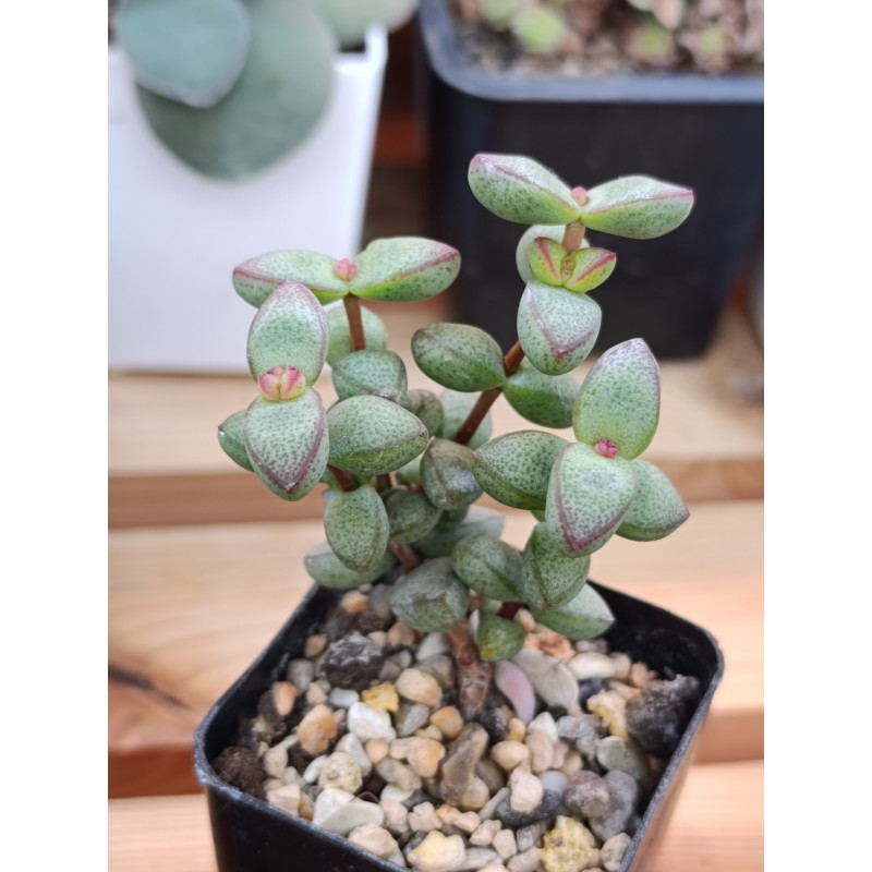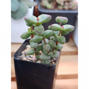 Кустик с большим количеством точек роста. Листья сочные, при ярком освещении красиво окрашены.