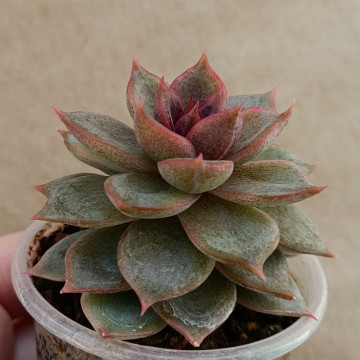 Эхеверия с мясистыми листиками. При ярком освещении приобретает коричнево-сиреневые оттенки. Окраска более насыщенная в центре розетки.