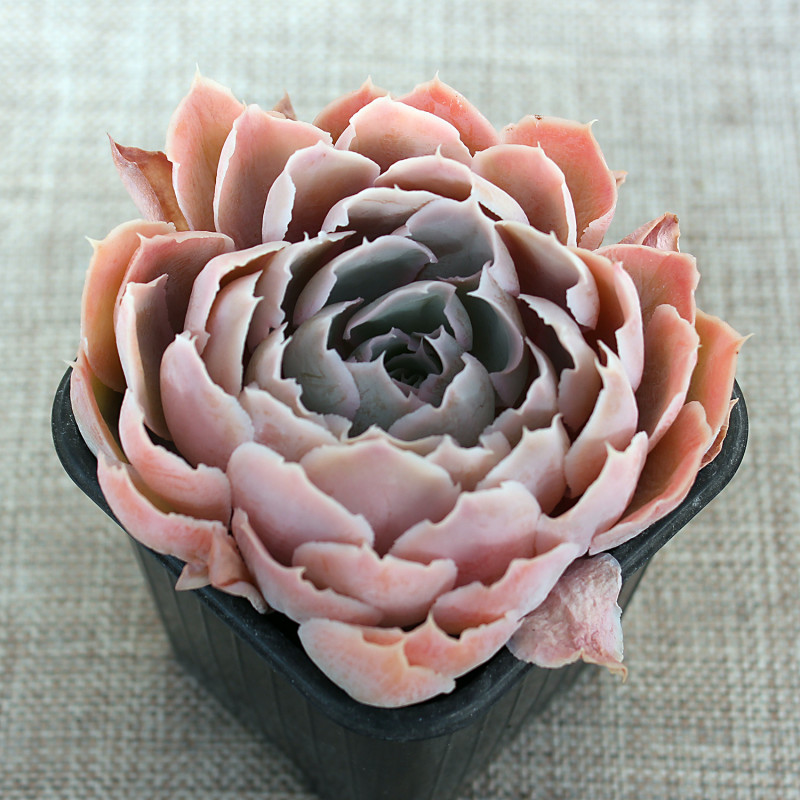 Точное название под вопросом. Возможно, это сорт 'Laguna Sanchez' или другой гибрид/разновидность Echeveria simulans. Отличается более длинными листьями с выраженным светлым волнистым кантом. Неприхотлива и быстрее растет. Форма и цвет розетки, а также волнистость канта зависят от условий. На последней фото она внизу. Цена за розетку 5 см.