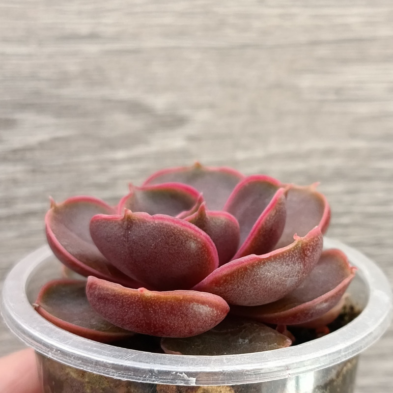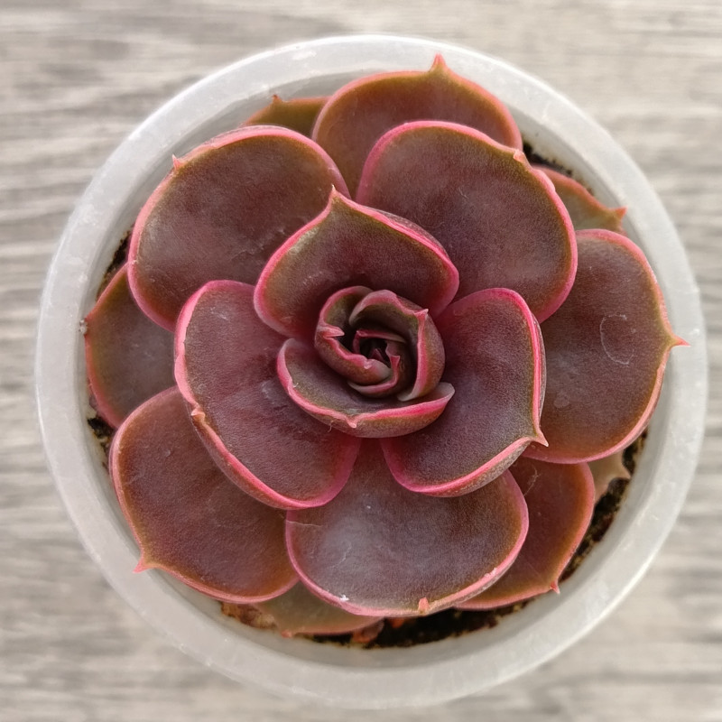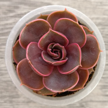 Эхеверия с интересной формой розетки в виде бутона. Кончики листьев чуть загнуты вверх. Цвет от зелёного до красно-коричневого. Нуждается в хорошей подсветке для поддержания яркого цвета.