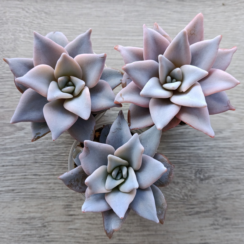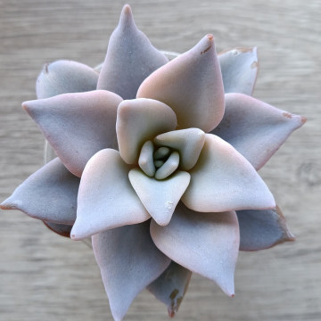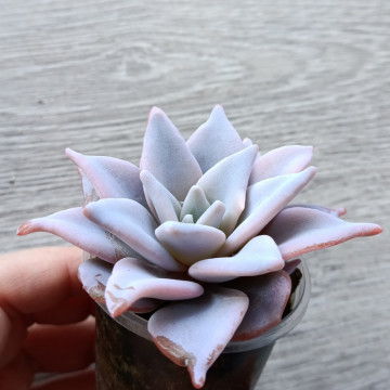 Эхеверия серебристого цвета с чуть волнистым листом. Лист вытянутой формы. Розетка не склонна к вытягиванию. Растет достаточно крупной. При ярком освещении становится розоватой.