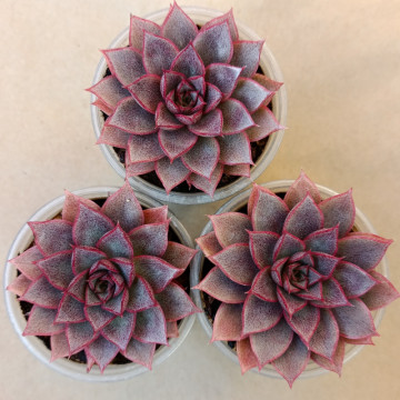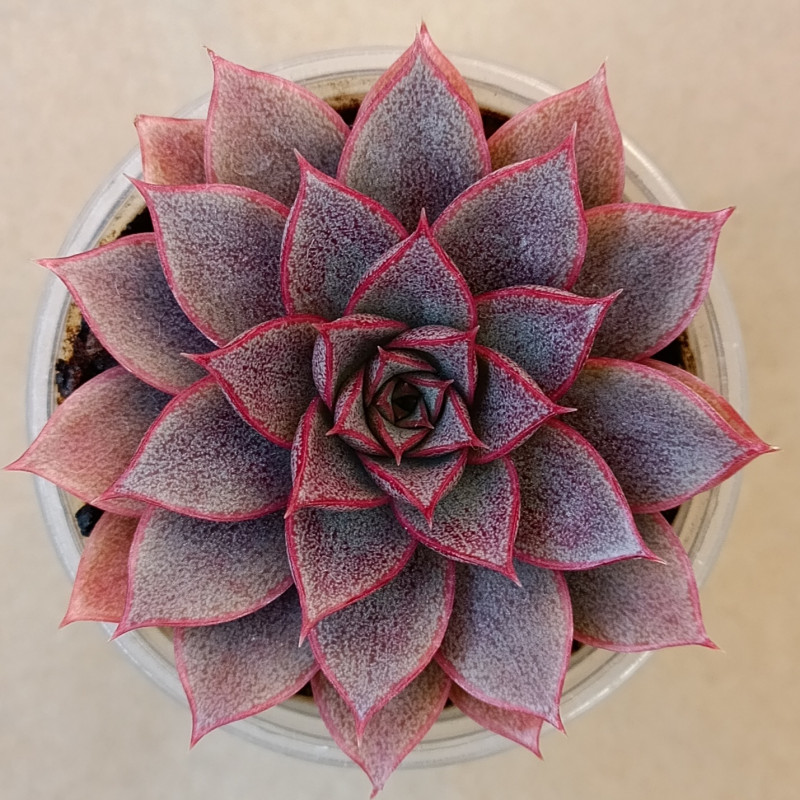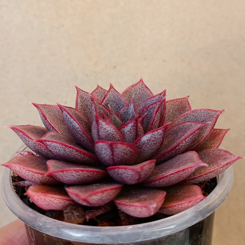 Красивый гибрид эхеверии Пурпузорум. Листья с глянцевым блеском, цвет листьев зелёный с темно-розовым. Каемка так же розовая. Чем больше света, тем больше преобладают розовые оттенки ближе к малиновому. Хорошо держит форму, не склонна к вытягиванию.