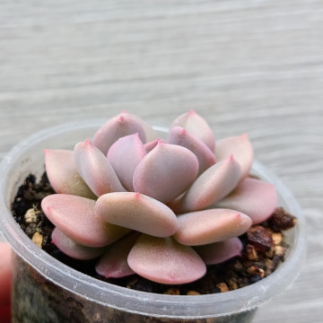 Эхеверия с изящными листьями, которые изгибаются к центру розетки. Цвет от зеленого с сиреневым отливом до розового по краям листьев ближе к центру. Вырастает достаточно крупной.