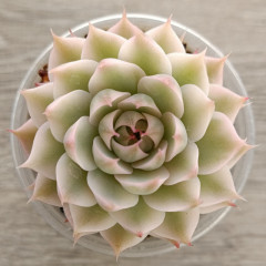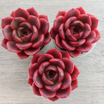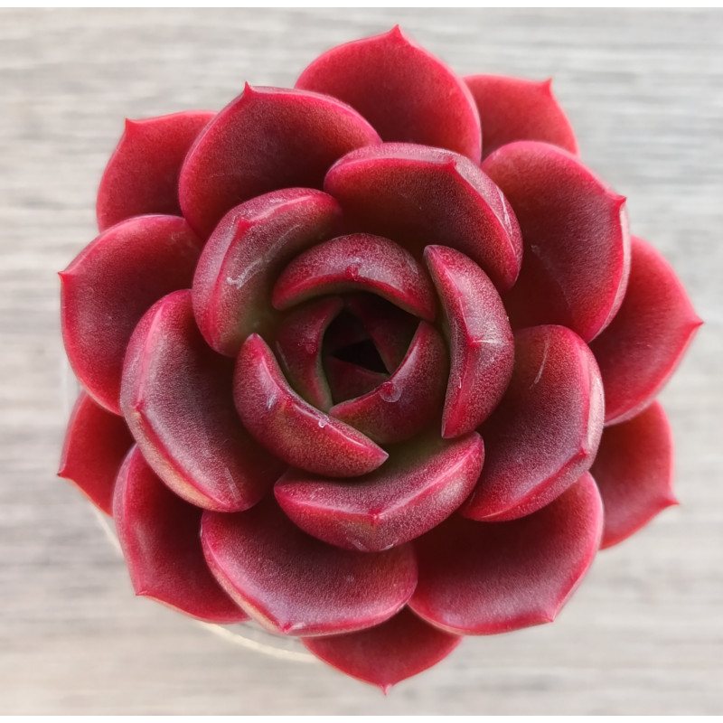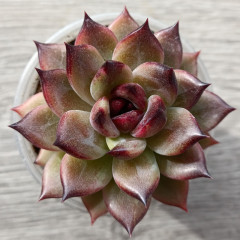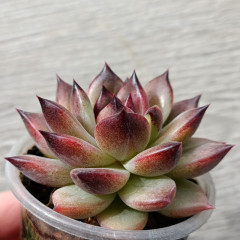 Эхеверия c яркими темно-зелеными листочками внутри и красными снаружи. Не склонна к вытягиванию. Для яркого окраса нужно хорошее освещение и редкий полив.