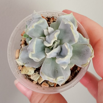 Эхеверия с красивой плотной розеткой. Листья жёсткие, плотные, с наростами, которые становятся все интереснее с возрастом.Цвет розетки голубоватый. Не склонна к вытягиванию.
