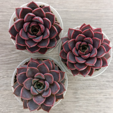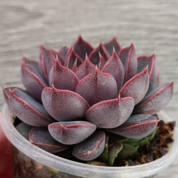 Красивая эхеверия за счёт множества небольших листочков заостренной формы. Цвет от зеленого до темно-лилового. Центр розетки и края листиков имеют более насыщенный цвет.