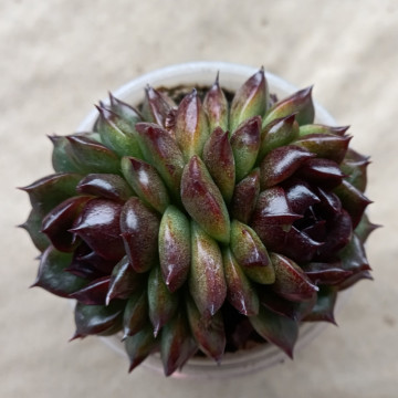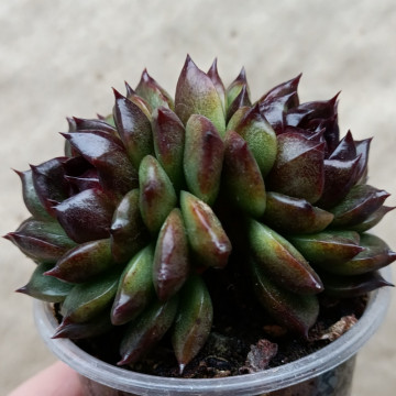 Яркое, красивое растение. Цвет от зелёного до темного бордово-коричневого. Окрашивание в бордово-коричневый начинается с центра и постепенно переходит на внешний край розетки. Для яркой окраски нужна хорошая досветка. Розетка красивая, аккуратная. Растёт медленно. Не склонна к вытягиванию. Также продают под названием 'Magic Choco'