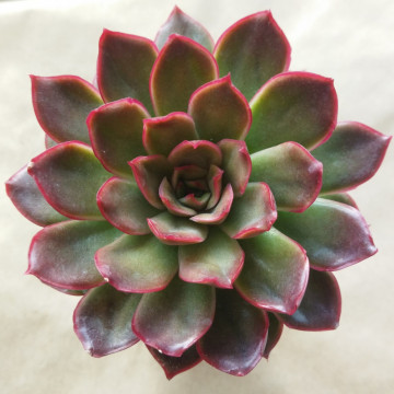 Эхеверия с листьями вытянутой формы. Цвет каемки становится алым при хорошем освещении. Лист немного волнистый. На фото 1 пример моего взрослого растения.