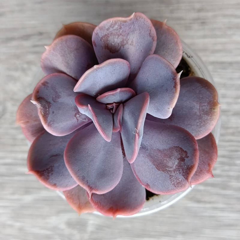 Красивая эхеверия яркого фиолетово-сиреневого цвета. На нижней стороне листа с возрастом образуются наросты.
