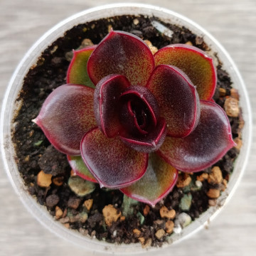 Эффектное растение с мясистыми глянцевыми листиками. Цвет от зелёного до красно-бордового. Для яркой окраски нужна хорошая подсветка. Так же продаётся под названием эхеверия 'Hongdeung'.