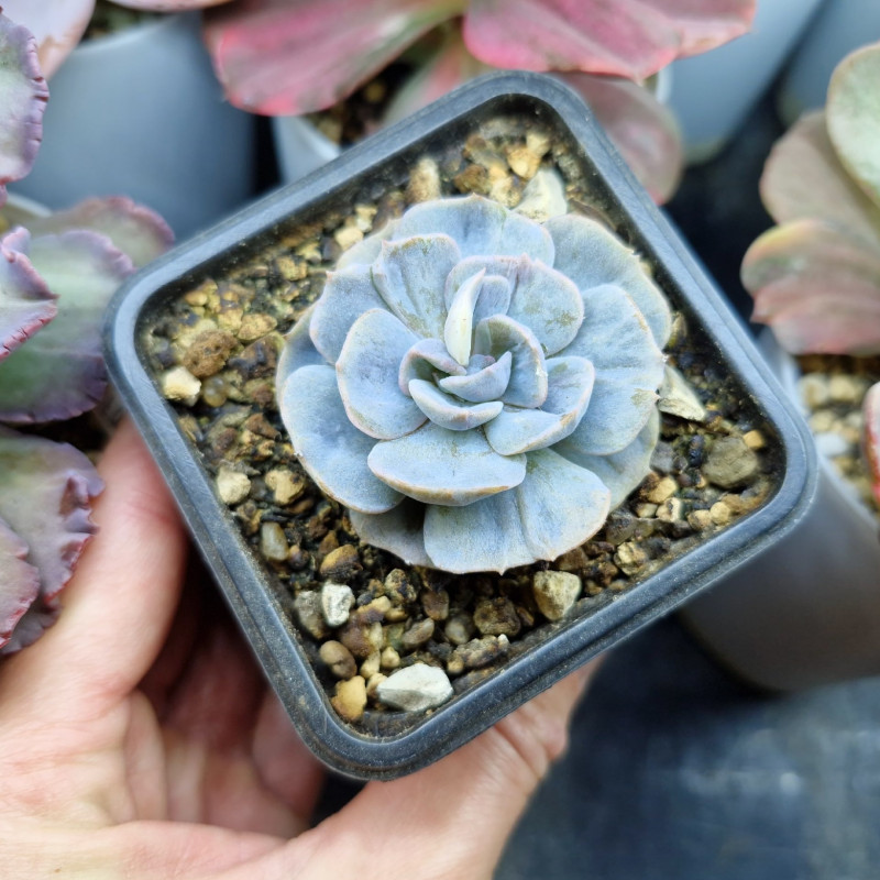 Монстрозная форма эхeверии Lilacina. Плотный, рельефный с неровной поверхностью лист. Край листа имеет неровные очертания.