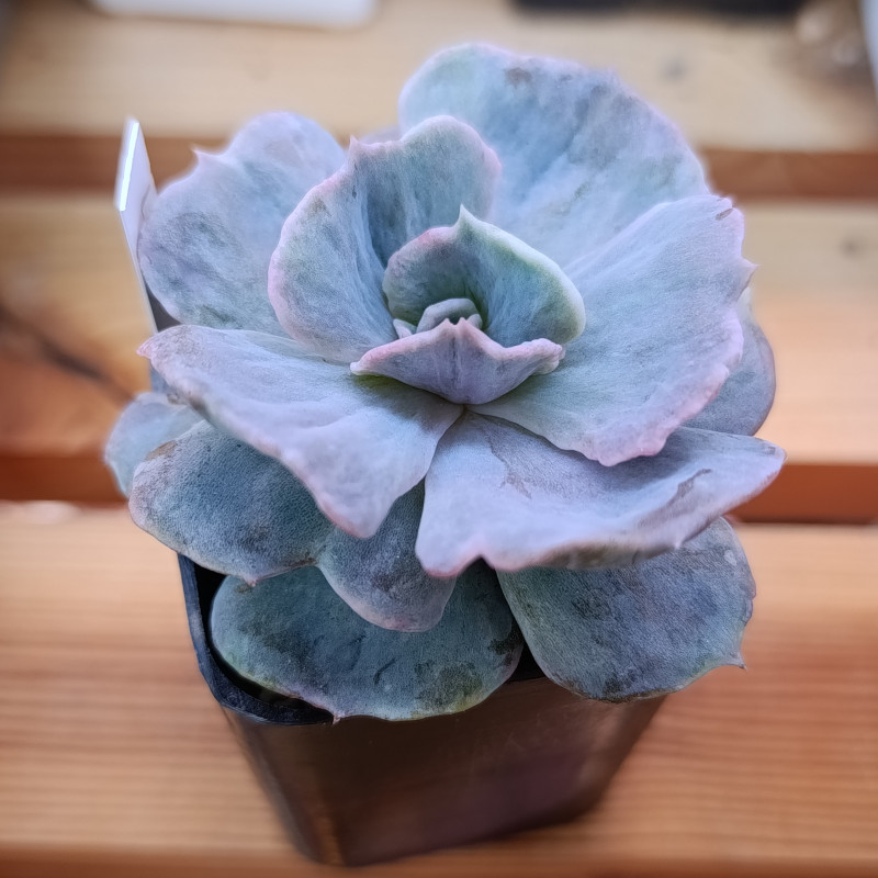 Монстрозная форма эхeверии Pollux. Рельефные листья с неровным краем. Размер розетки около 6 см