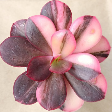 Эхеверия с длинными, тонкими, плоскими листьями. Основной цвет зелёный или бордово-коричневый при достаточном освещении. По листьям расходятся прожилки розового, жёлтого, светло-зеленого цветов.