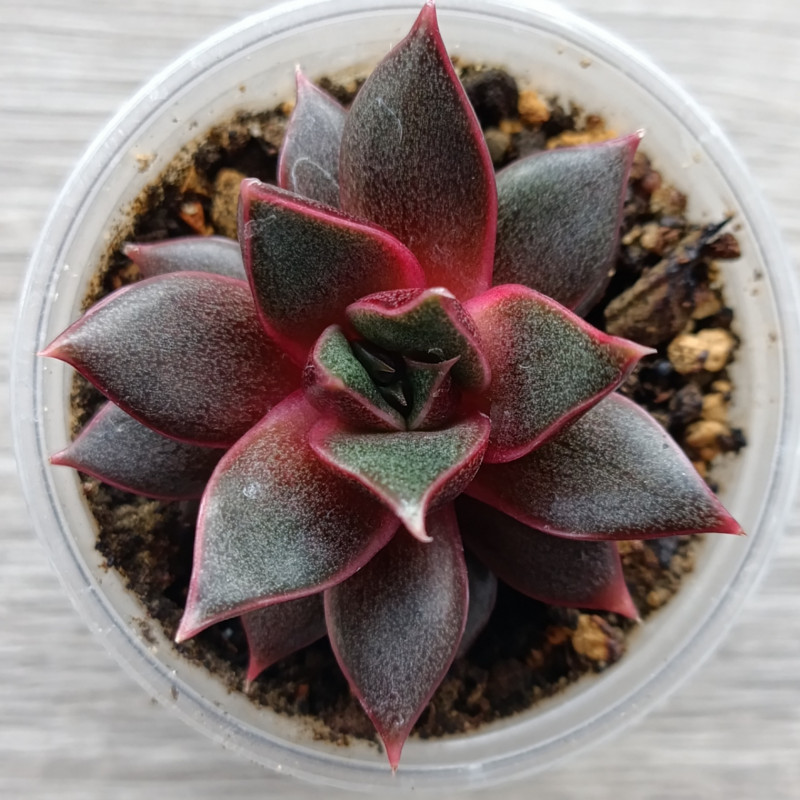 Яркое, красивое растение с мясистыми листочками. Форма розетки как звёздочка, с вытянутыми, заострёнными листочками. Цвет от тёмно-зелёного до красно-бордового.