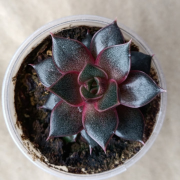 Яркое, красивое растение с мясистыми листочками. Форма розетки как звёздочка, с вытянутыми, заострёнными листочками. Цвет от тёмно-зелёного до красно-бордового.