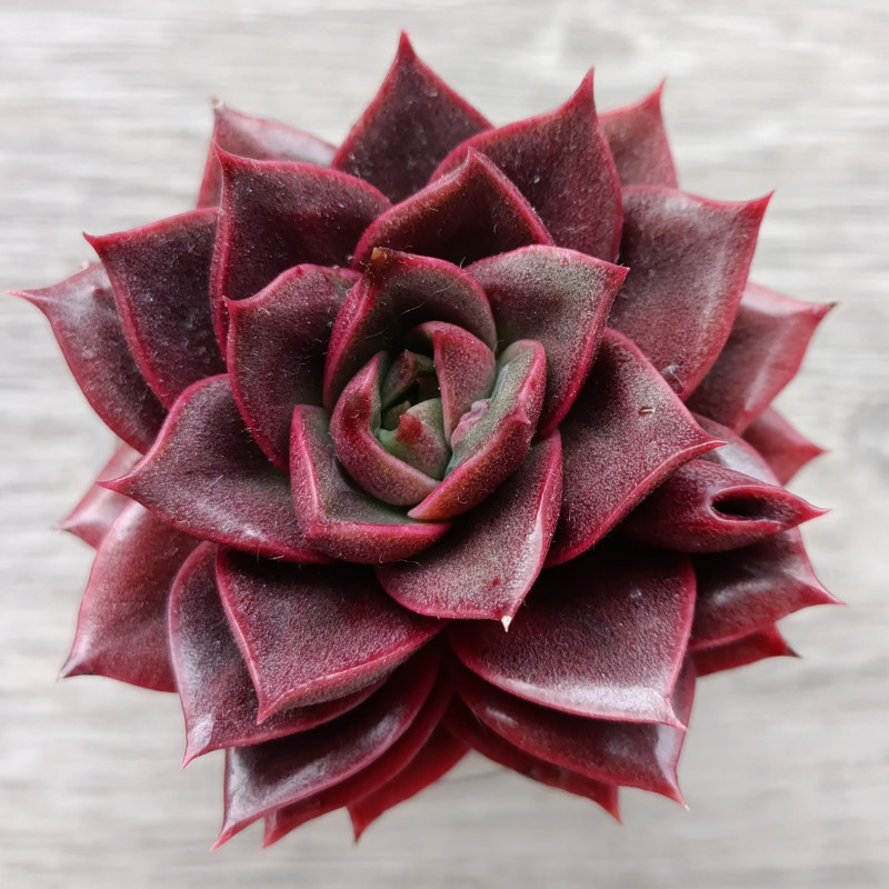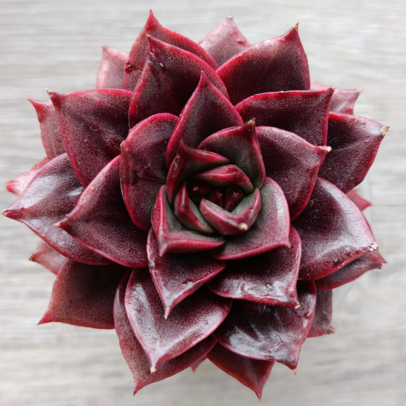 Яркая эхеверия с глянцевыми листиками. Цвет от зелёного до тёмно-красного. Окрашивается хорошо. Иногда на листиках образуются наросты.