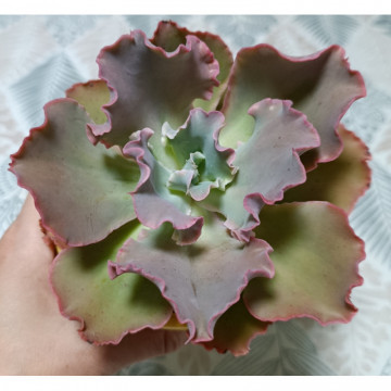 Крупная эхеверия с плотным волнистым листом розовых оттенков.