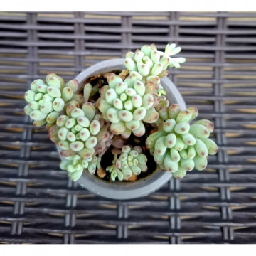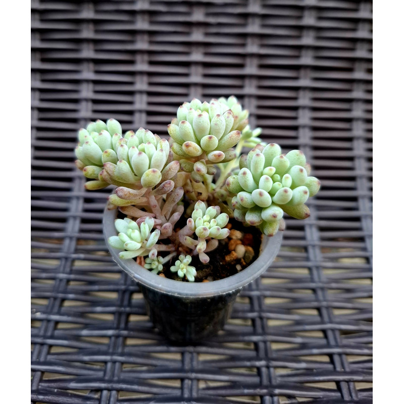 Растение в стаканчике 50мл. Их там несколько штук, вырастет сразу куртинкой. Листочки каждого похожи на виноградинки.