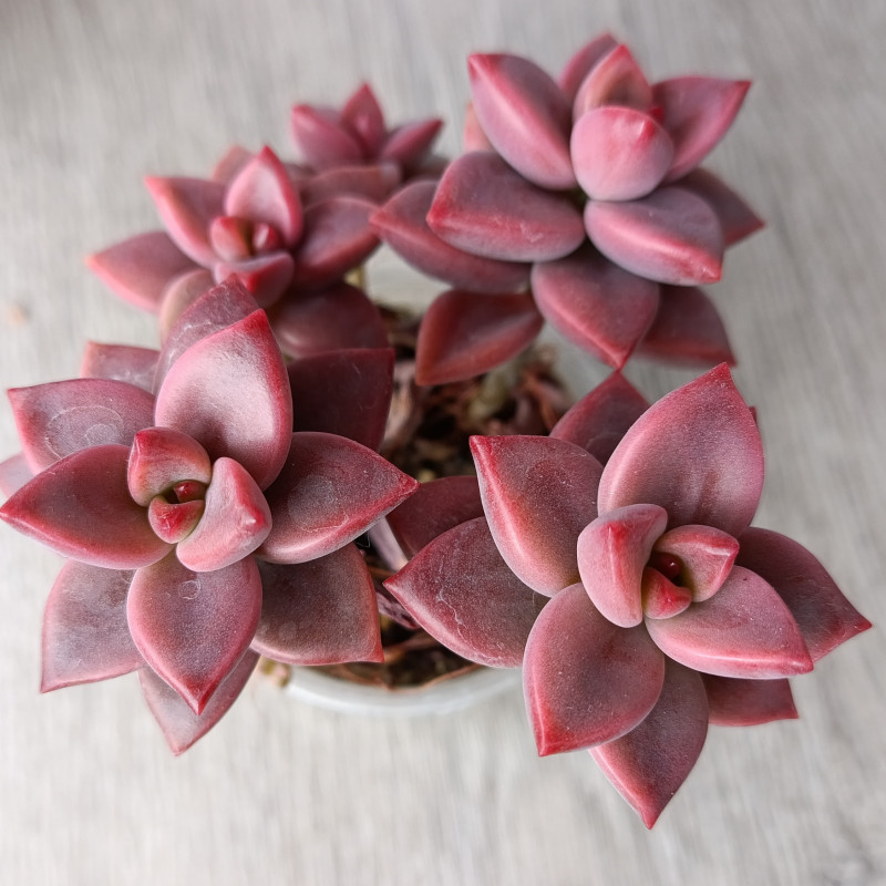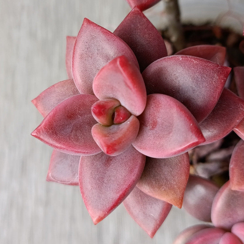 Растение имеет цвет от тёмно-зелёного до бордово-коричневого в зависимости от освещения. Розетка достигает в ширину 3-5 см. Со временем стебель вытягивается.