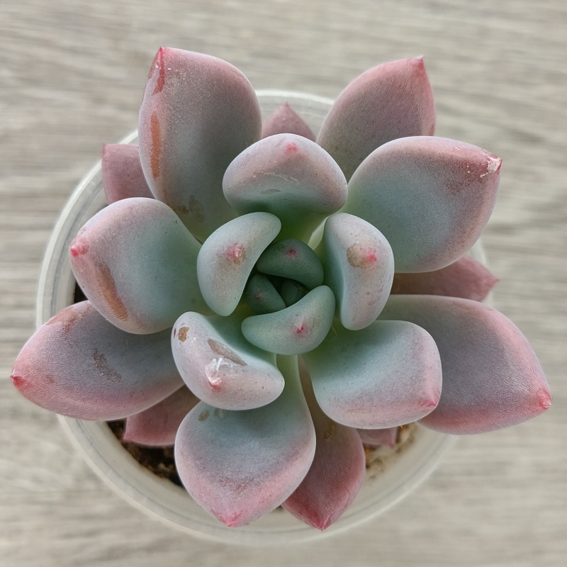 Граптоверия с мясистыми пухлыми листиками. При ярком освещении листья становятся сизыми или розоватыми. Для поддержания формы розетки, нужен редкий полив, бедная почва и хорошее освещение.