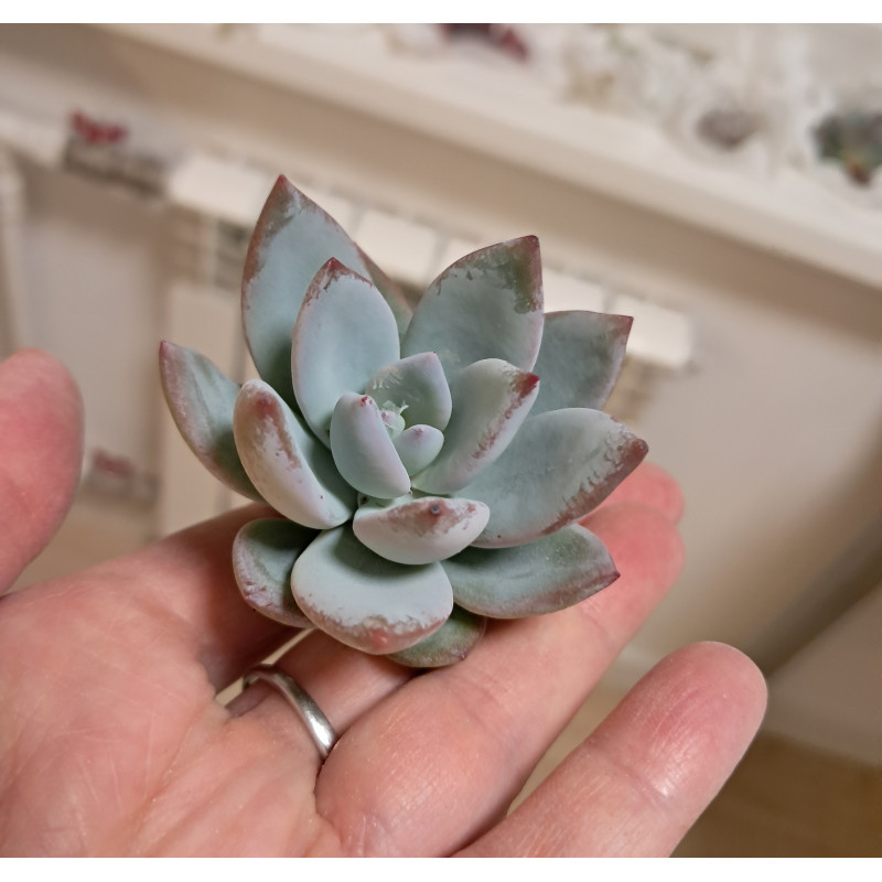 Синонимы: Echeveria 'Ice Crystal', Pachyveria 'Exotica', Pachyveria 'Kobayashi'. Гибрид пахифитума яйцевидного и эхеверии канте. Небольшие голубые розетки из сочных заостренных листьев, густо покрытых белым налетом. Цена за черенок 5 см.