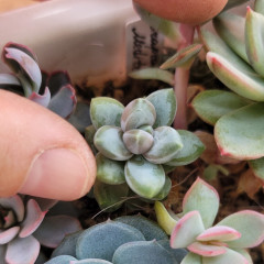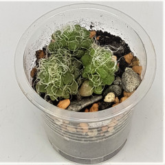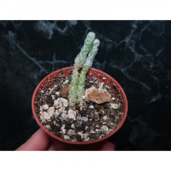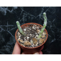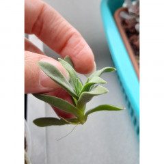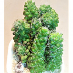 Точное название под вопросом. Очень мелкий суккулент с зелеными булавовидными листьями, темнеющими при сильном освещении. Ствол и основание листа покрыты длинными белыми волосками, обволакивающимим все растение. В продаже сеянцы 1 см.