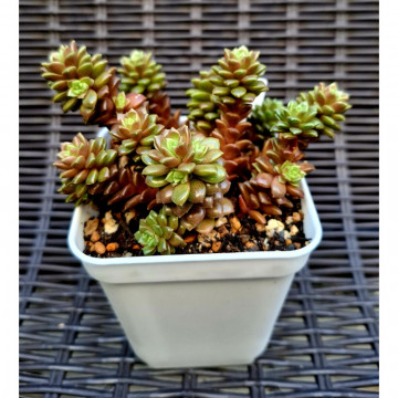 Растение образует много мелких розеток. При достаточном освещении становится коричневый. Растёт не быстро, достаточно компактно. Растёт в стаканчике 50мл. Фото 3 для примера - моё растение, не продаётся
