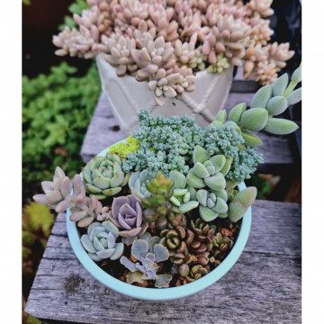 Растения посажены в красивый горшочек. Количество сортов - 11 шт. При надлежащем уходе, будет радовать своими красками и декоративностью долгое время. Отправлю и горшок, а если он вам не нужен, пишите в комментарии и я отниму 150р от цены товара. Растения отправлю по-отдельности, т.е. каждое упакую отдельно. Но, если у вас есть идеи отправки такого садика целым, с удовольствием их рассмотрю в комментарии к заказу.